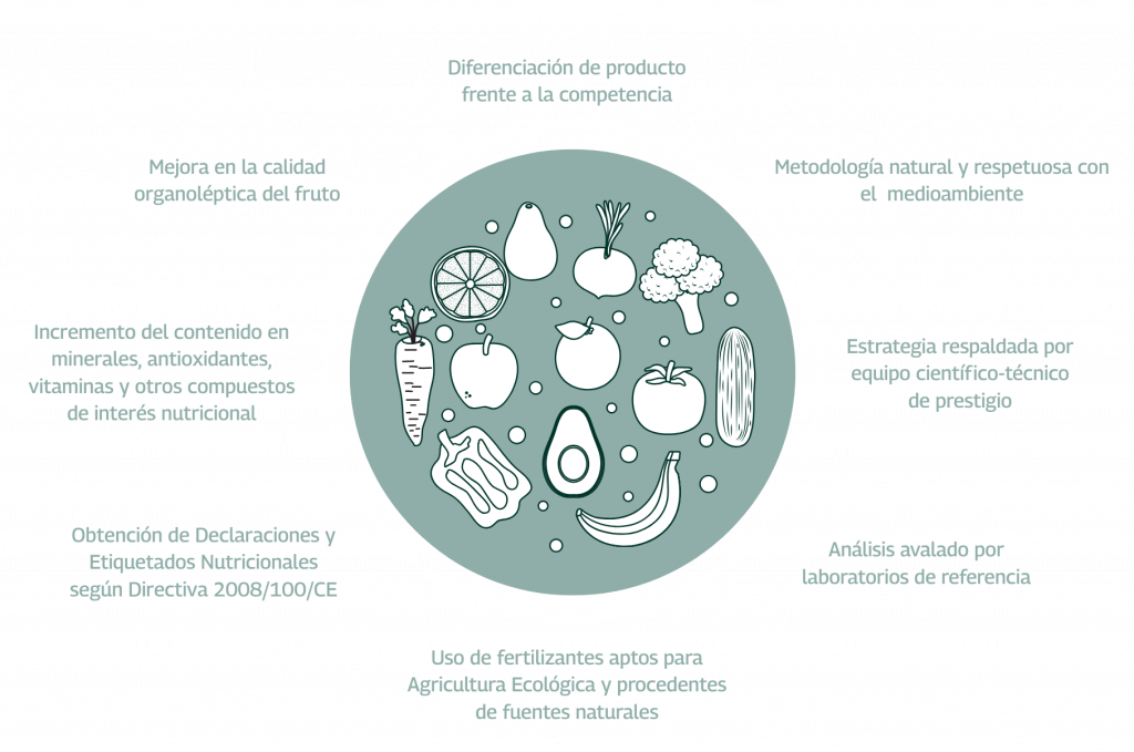 Mediante nuestros protocolos de biofuncionalización natural de frutas y hortalizas, podemos aportar a sus productos cualidades nutricionales diferenciales.