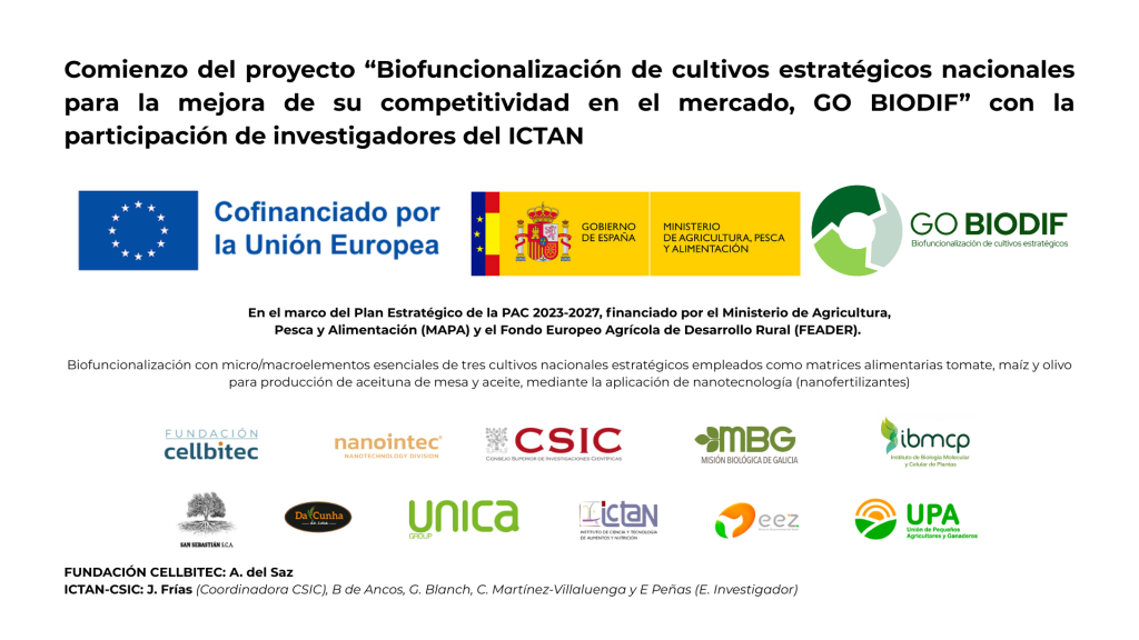 Este proyecto busca la biofuncionalización con micro/macroelementos esenciales de tres cultivos nacionales estratégicos empleados como matrices alimentarias tomate, maíz y olivo para producción de aceituna de mesa y aceite, mediante la aplicación de nanotecnología (nanofertilizantes).